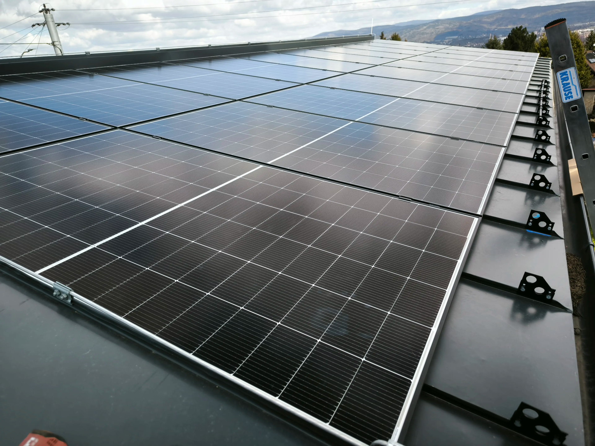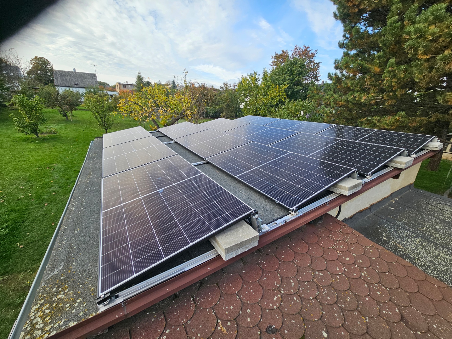 Realizace fotovoltaické elektrárny o výkonu 10 kWp. Pro instalaci byly použity panely TW Solar 500Wp, střídač GoodWe 10KN-ET, bateriové úložiště Pylontech Force H2 s kapacitou 10,65 kWh.