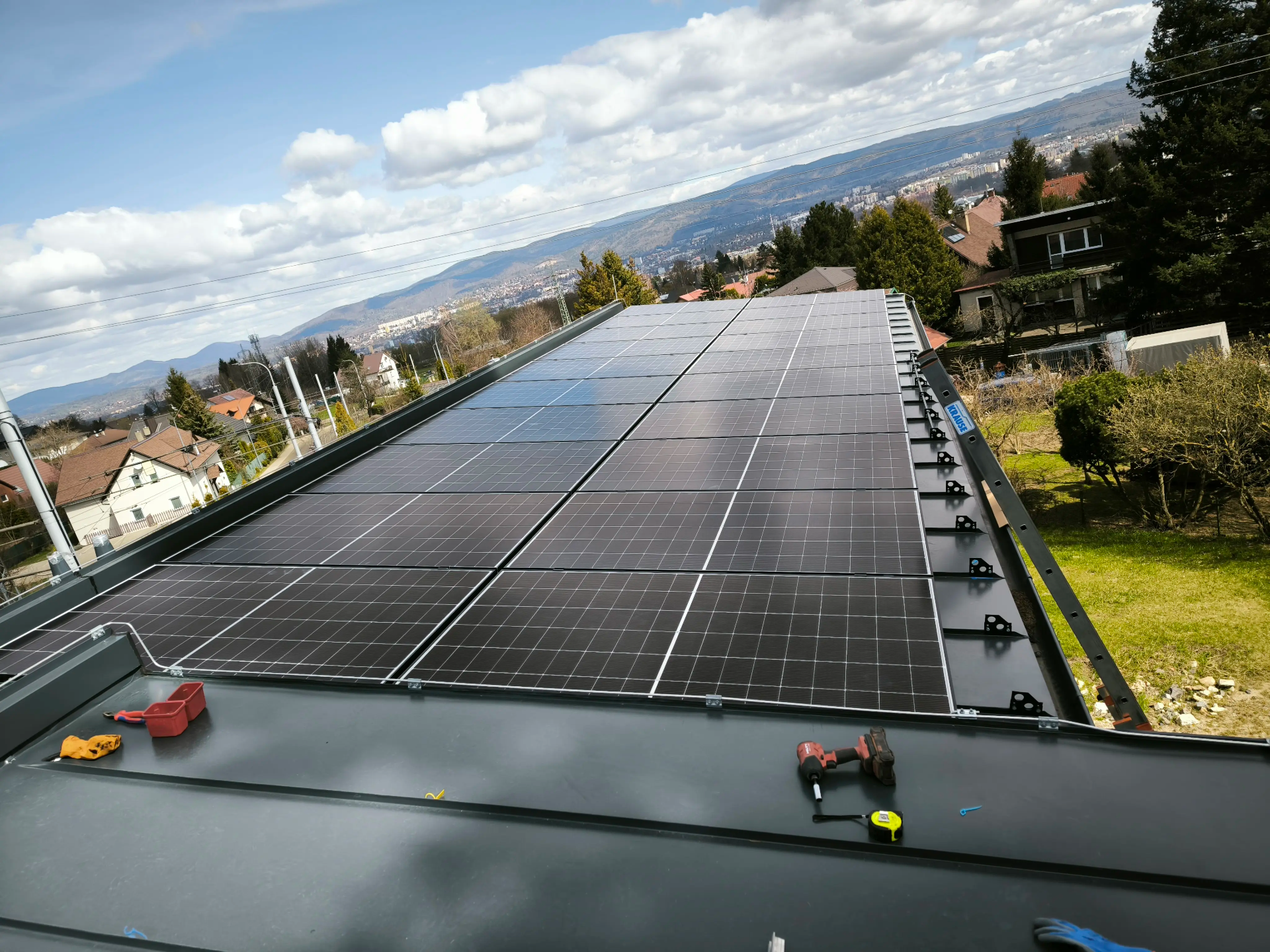 Realizace fotovoltaické elektrárny o výkonu 10 kWp. Pro instalaci byly použity panely TW Solar 500Wp, střídač GoodWe 10KN-ET, bateriové úložiště Dyness Tower T10 s kapacitou 17,75 kWh a nabíječkou na elektromobil.