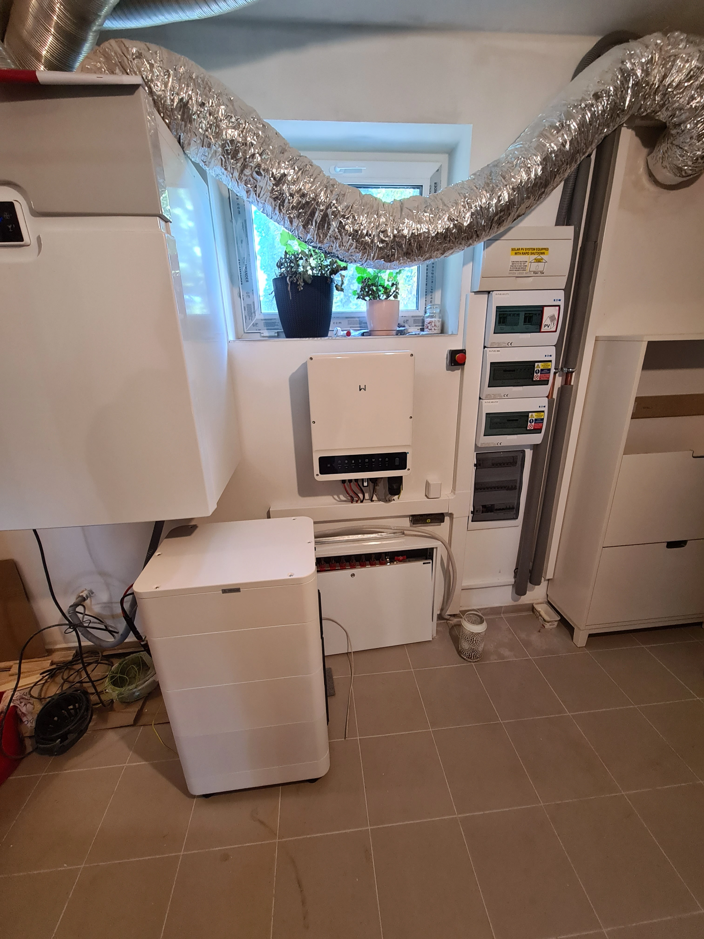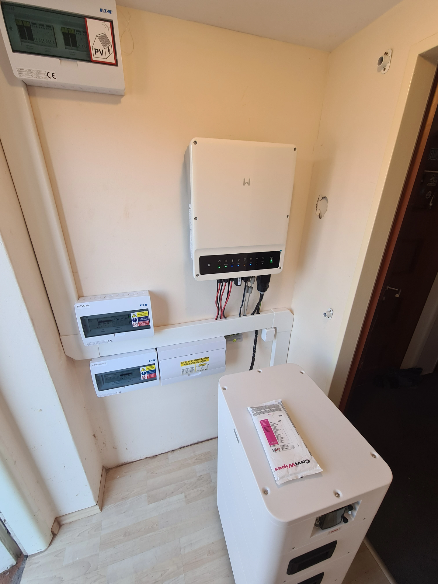 Z původní kapacity 14,2 kWh byly baterie Pylontech Force H2 navýšeny na 28,4 kWh, pro instalaci chytrého řízení bylo zvoleno Cubee One.