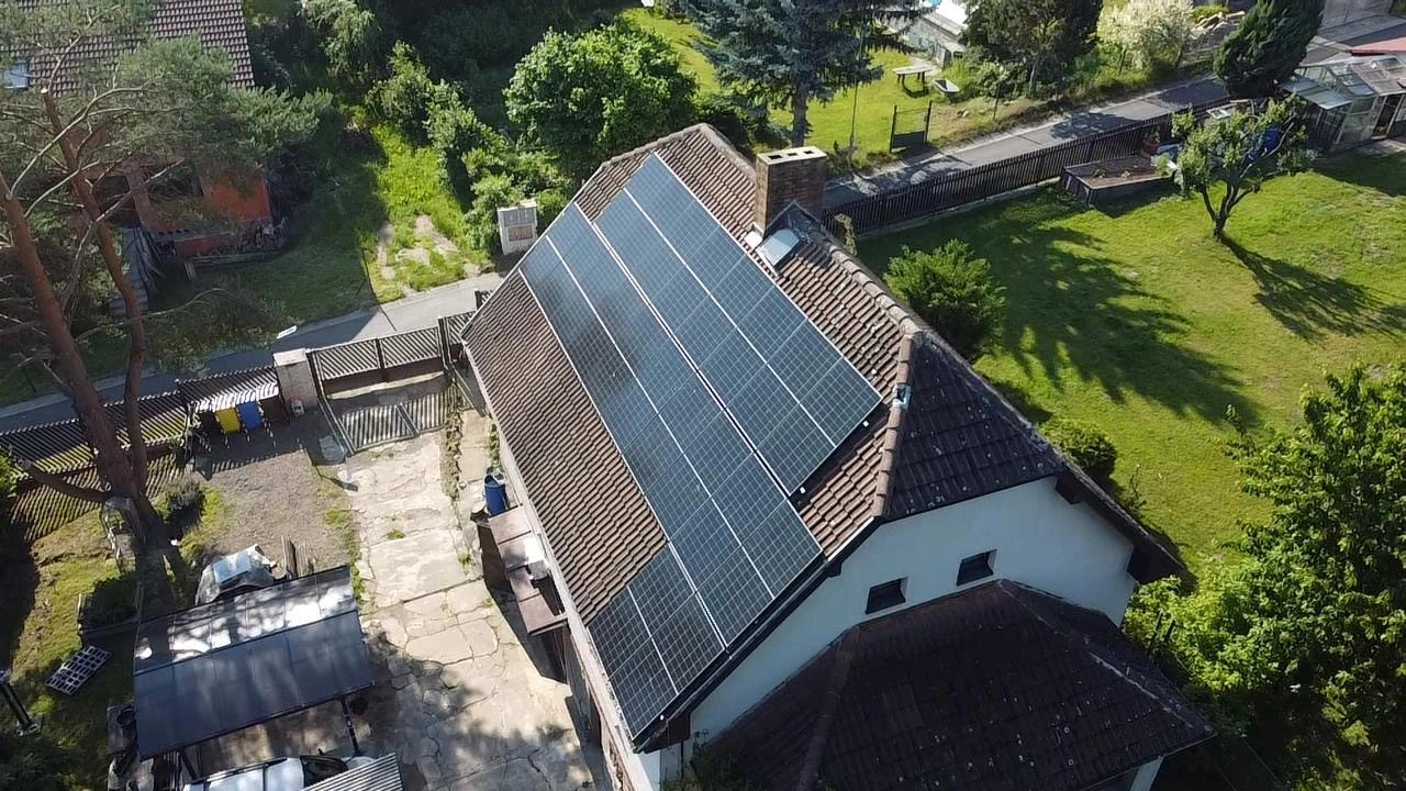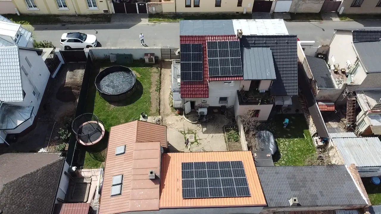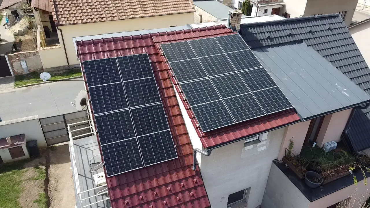 Realizace fotovoltaické elektrárny o výkonu 10 kWp. Pro instalaci byly použity celočerné panely Longi, střídač GoodWe 10KN-ET, bateriové úložiště Pylontech Force H2 s kapacitou 10,65 kWh.